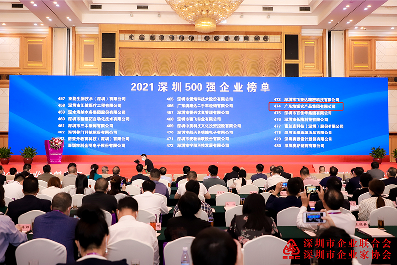 2021深圳500強企業(yè)發(fā)布,燦城農產(chǎn)品位列474名